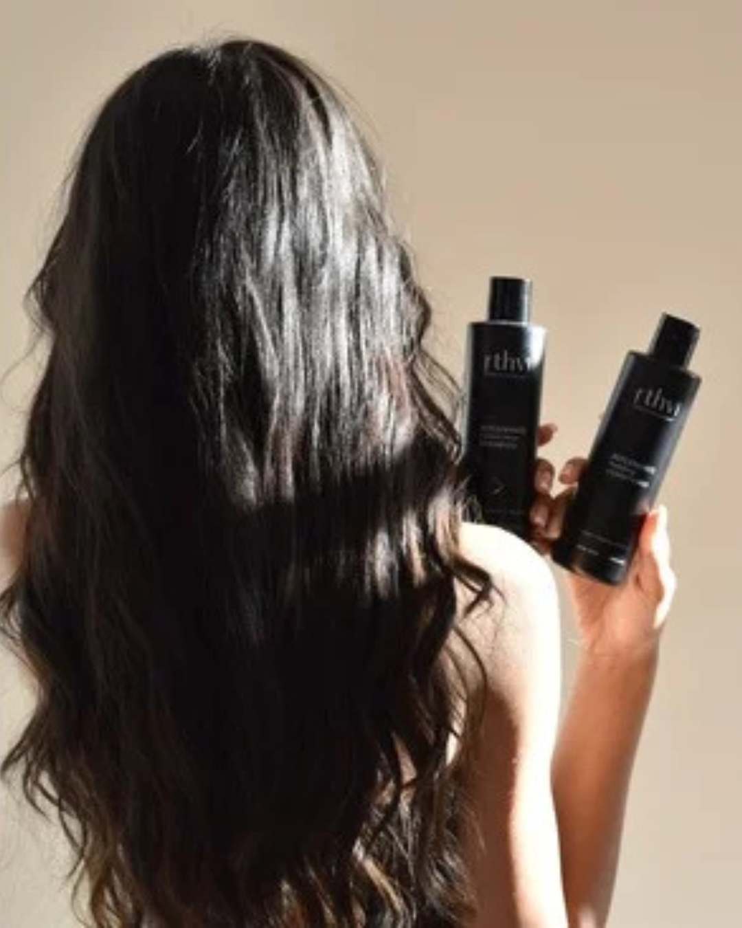 Step 2: Cleanse with Replenivate Shampoo & Conditioner to fortify strands.